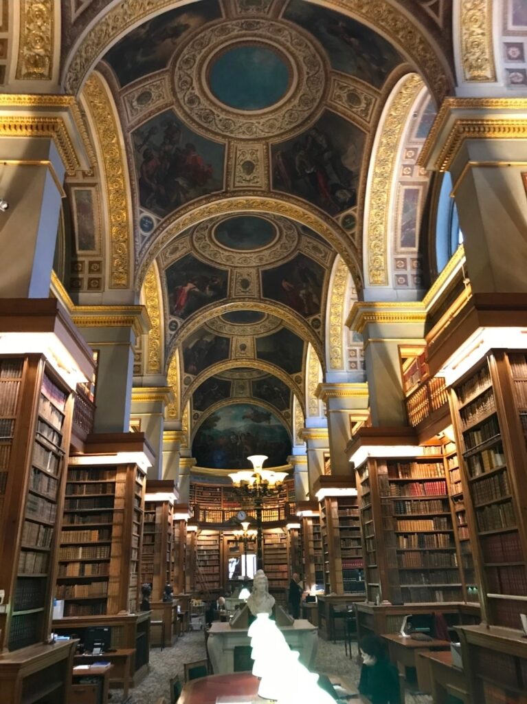 Dưới mái vòm rực rỡ sắc xanh và vàng, Thư viện Quốc hội Pháp hiện lên như một thánh đường của trí tuệ, nơi ánh sáng từ những bức bích