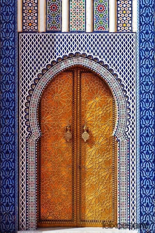 Nhìn vào cánh cửa đồng chạm hoa văn Morocco, người ta có cảm giác như đang đứng trước một trang sách được viết bằng ánh sáng và hình học. Những