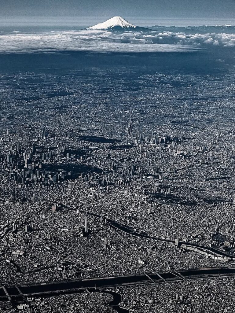 Từ độ cao nơi mây trôi lặng lẽ, Tokyo hiện ra như một đại dương bê tông bất tận, những khối nhà chen nhau đến tận chân trời. Vượt lên