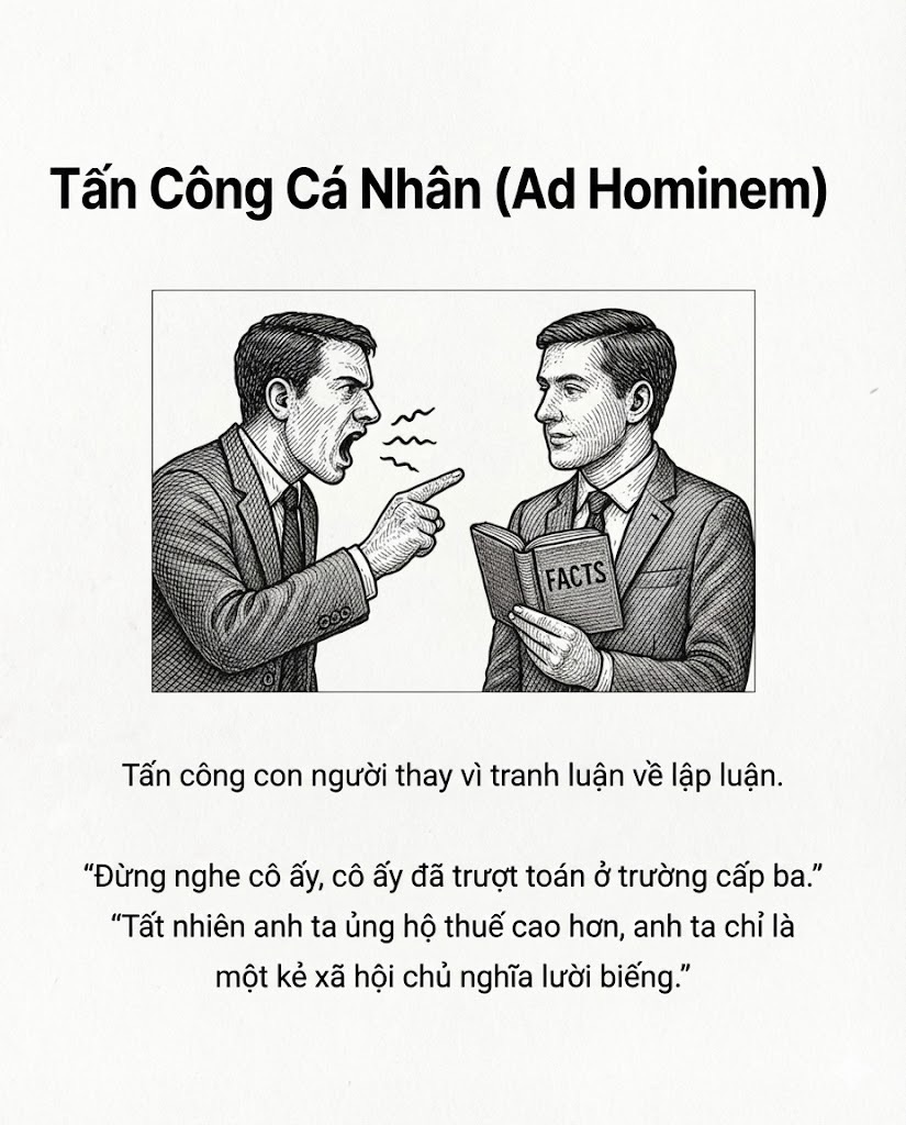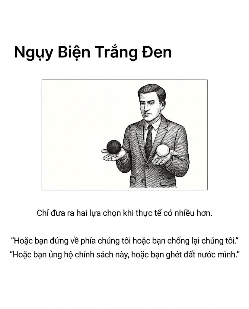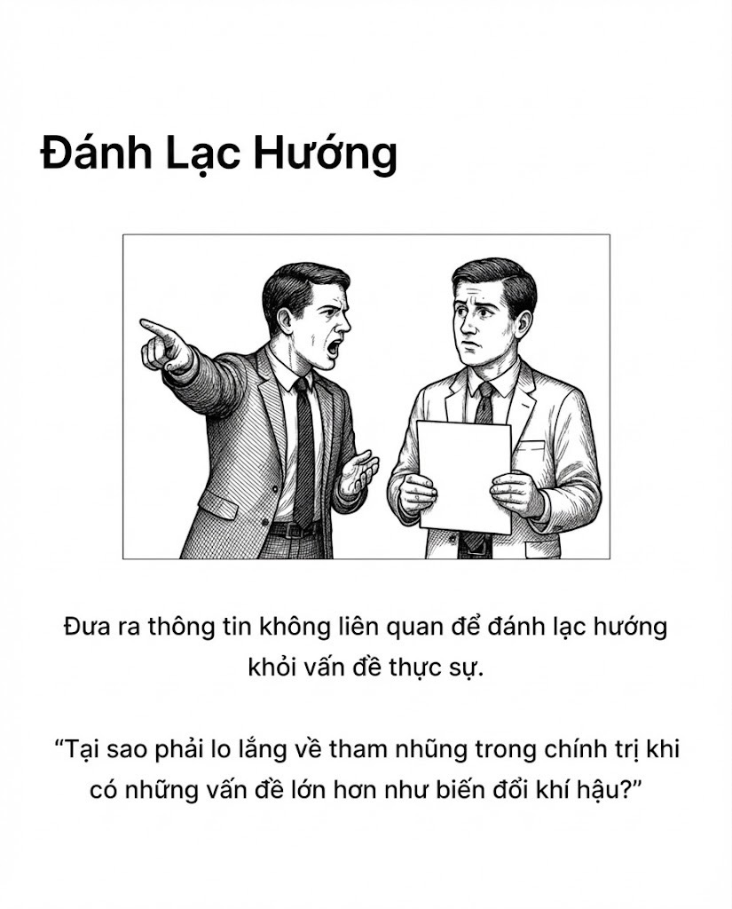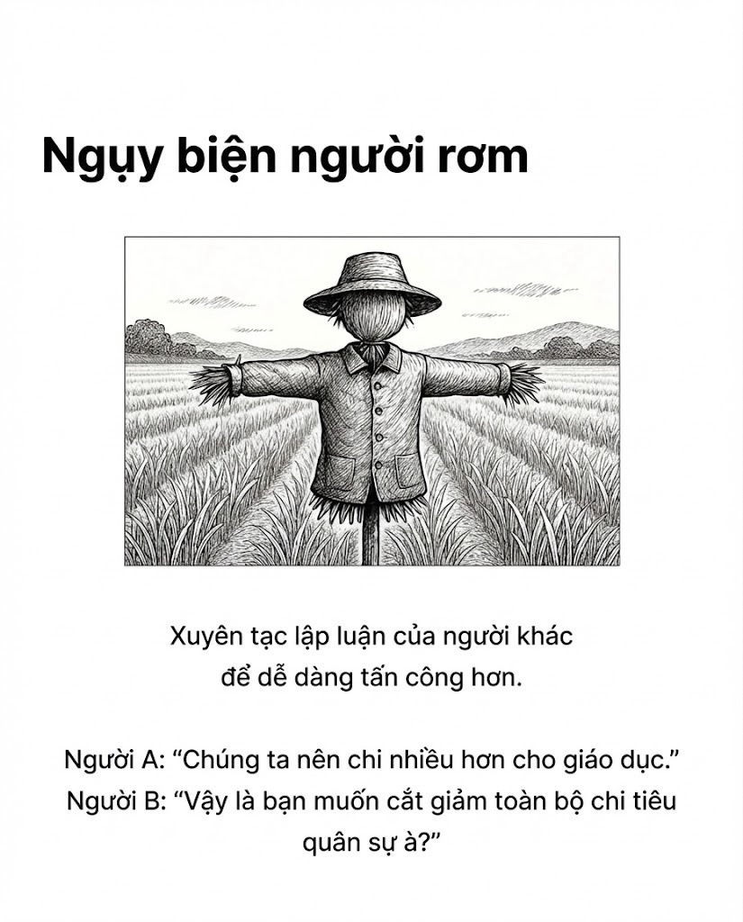 Nguỵ biện người rơm Tấn công cá nhân Lời khẩn cầu quyền lực Nguỵ biện số đông Nguỵ biện trắng đen Nguyên nhân sai Lập luận vòng tròn Dốc trơn trượt Đánh lạc hướng — Sưu tầm